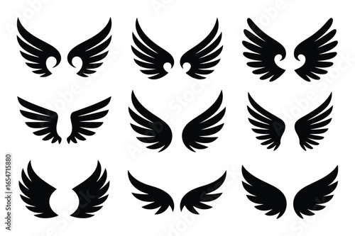 © SaymaHossan, Fototapeta premium Collection of black angel wings isolated on white background