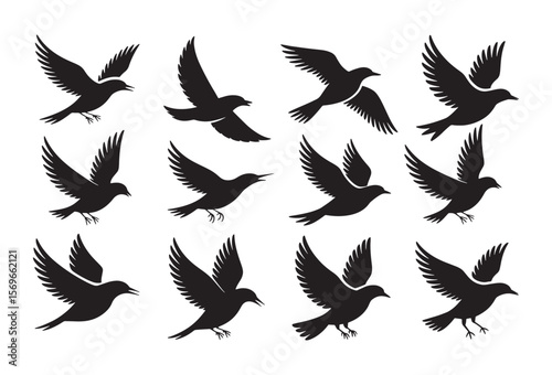 Obraz premium Collection of black bird silhouettes in various flying poses