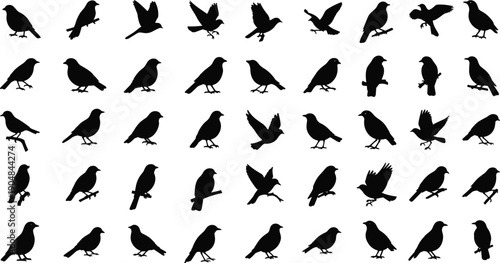 Naklejka premium Collection of black bird silhouettes in various poses