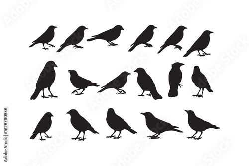 Obraz premium Collection of black bird silhouettes in various poses on a white background...