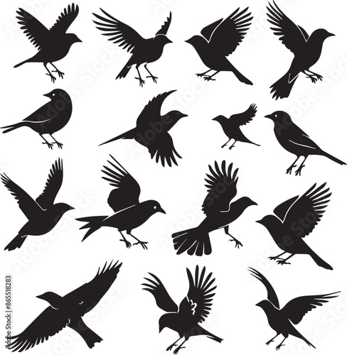 © Graphicistock, Obraz premium Collection of Black Bird Silhouettes: Vector Design Elements