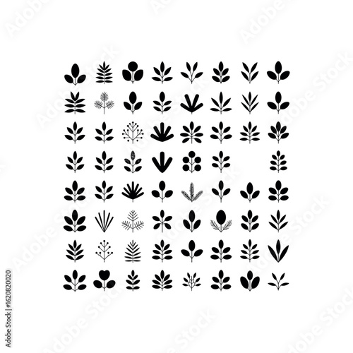 © AH STUDIO'S, Naklejka premium Collection of black botanical leaf and branch icons on white background leaves nature