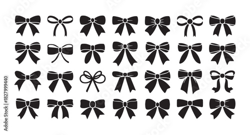 © Khadiza.b, Naklejka premium Collection of black bow silhouettes on white background
