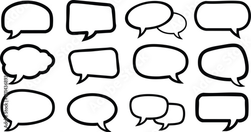 Obraz premium Collection of black hand-drawn speech bubbles and thought clouds in various shapes and sizes for design and communication use