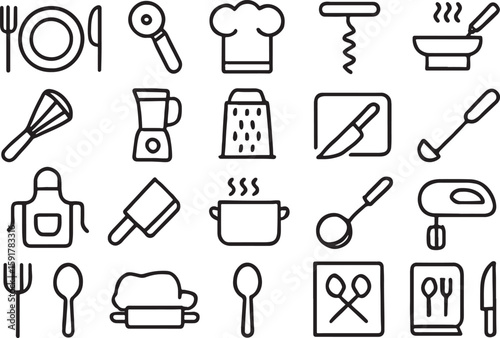 Obraz premium Collection of black outline kitchen and cooking icons