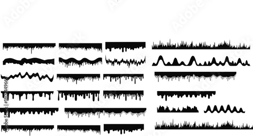 Obraz premium Collection of black paint dripping borders and edges on white background