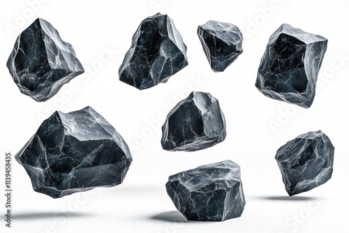Naklejka premium Collection of Black Rocks, Isolated on White Background
