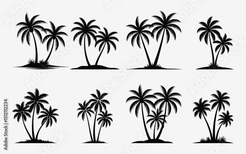 © Vector Mask, Obraz premium Collection of black silhouette palm trees on white background