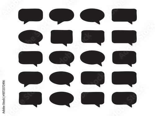 Obraz premium Collection of black speech bubble shapes in a grid a graphic silhouette