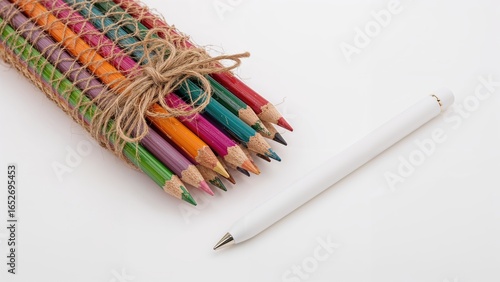 © Seyyar, Naklejka premium Collection of bright pencils wrapped with hemp cord