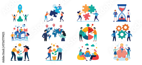 © mdkamran, Naklejka premium Collection of Business Concepts and Teamwork Illustrations with People Working Together