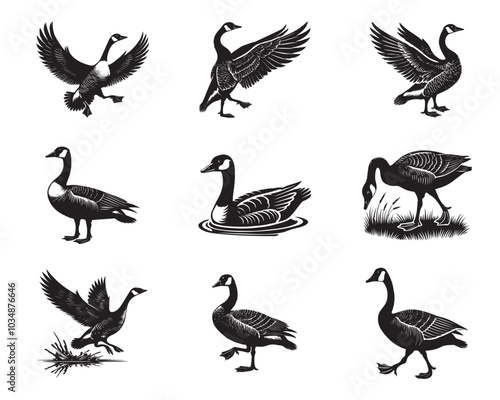 © Shineoxstock, Obraz premium Collection of Canada Goose Vector illustration - Canada Goose Bird silhouette Design