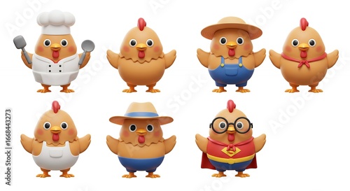© Uswatun, Naklejka premium Collection of cartoon chicken characters in various professions