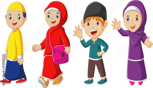 © Gist Design07, Fototapeta premium Collection of cartoon Muslim people on illustration on a white background. Vector illustration