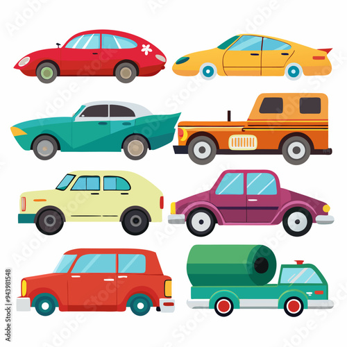 © Rizaldi, Fototapeta premium Collection of Cartoon Vehicles in Various Colors and Styles