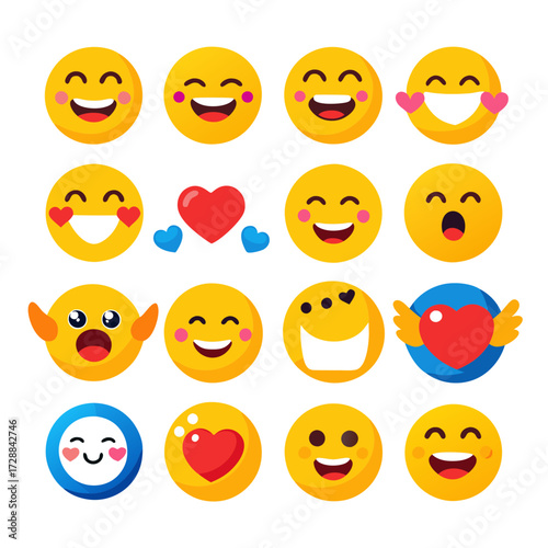 © Wahid Xihan, Fototapeta premium Collection of cheerful emoji icons on a clean white background