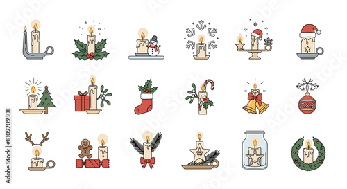 Naklejka premium Collection of christmas candles with festive decorations and ornaments