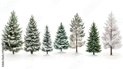 © Otseira, Naklejka premium Collection of christmas Trees with Snow on white background