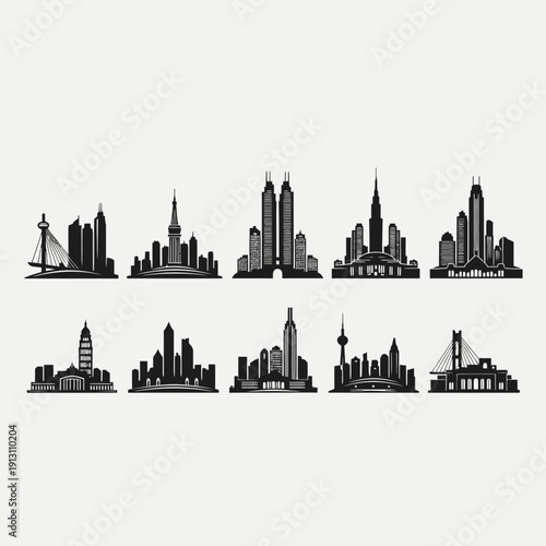 © enggal 99, Naklejka premium Collection of City Skylines Silhouettes 1.