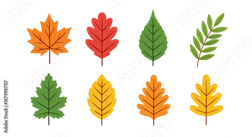 Fototapeta premium Collection of colorful autumn leaves including maple, oak, and other tree...
