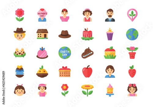 © Desingora, Fototapeta premium Collection of Colorful Flat Icons for Various Holidays and Celebrations.