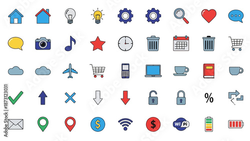 Fototapeta premium Collection of colorful flat icons for web and app design