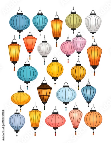 Fototapeta premium Collection of colorful hanging lanterns (1)
