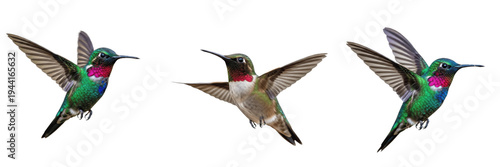 © michael, Fototapeta premium Collection of colorful hummingbirds in flight isolated on white background