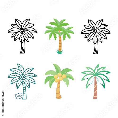 © omar, Obraz premium Collection of colorful palm tree illustrations