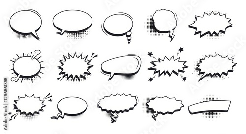 Fototapeta premium Collection of Comic Book Speech Bubbles and Text Boxes