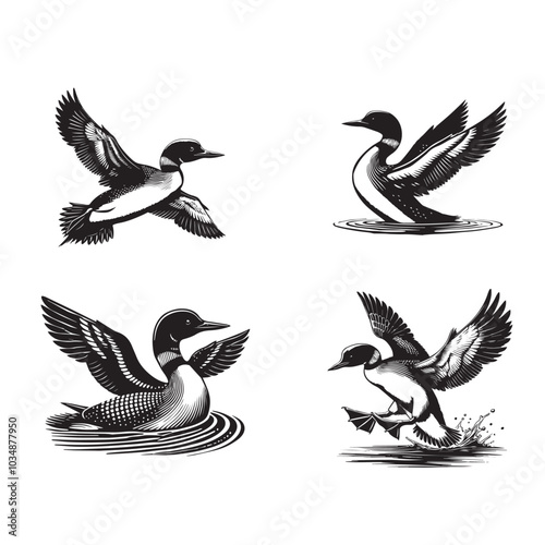 © Shineoxstock, Obraz premium Collection of Common loon Vector illustration - Common loon Bird Clipart Design