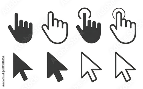 © MDSHAHINUL, Obraz premium Collection of computer pointer icons including hand gesture and arrow cursors for UI design