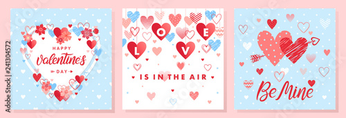 Fototapeta premium Collection of creative Valentines Day cards.Hand drawn lettering with hearts,arrows and flowers.Romantic illustrations perfect for prints,flyers,posters,holiday invitations and more.