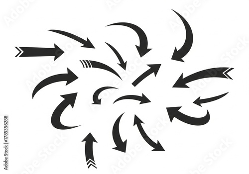 © Hujat, Fototapeta premium Collection of curved arrow vector icons simple black direction pointers design elements for navigation and user interface isolated on wh