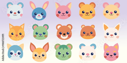 Fototapeta premium Collection of Cute Cartoon Animal Faces vector