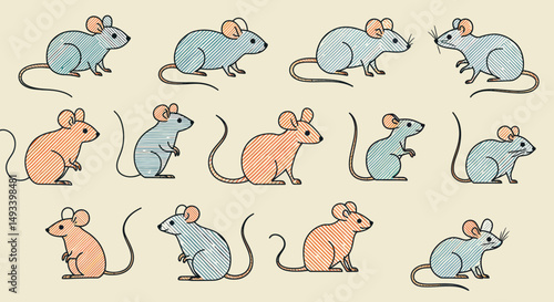 Obraz premium Collection of Cute Cartoon Mice in Various Poses