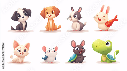 Fototapeta premium Collection of Cute Cartoon Pet Animals Featuring Adorable Characters