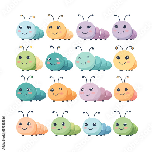 Fototapeta premium Collection of cute, colorful cartoon caterpillars with happy expressions,...