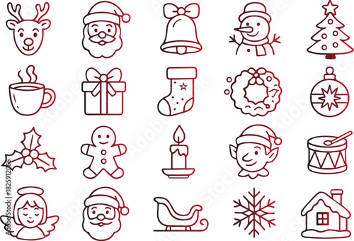 Obraz premium Collection of cute hand drawn line art icons representing various christmas...