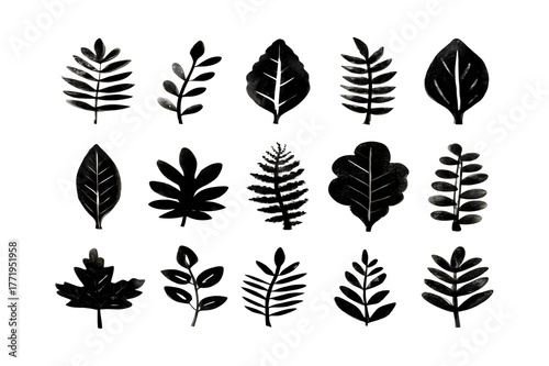 © Habibur Rahaman, Fototapeta premium Collection of dark tropical foliage silhouettes displaying various leaf shapes and textures for natural design elements isolated on transparent background