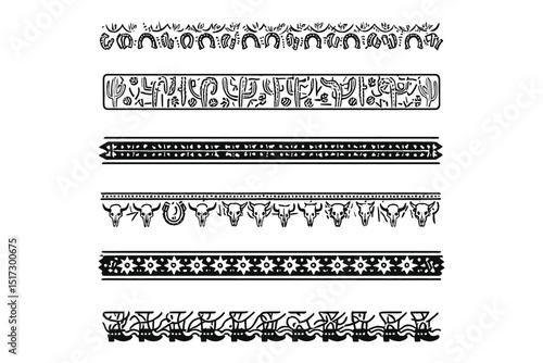 Obraz premium Collection of Decorative Black and White Ethnic Borders, Tribal Design Elements, Vector EPS File