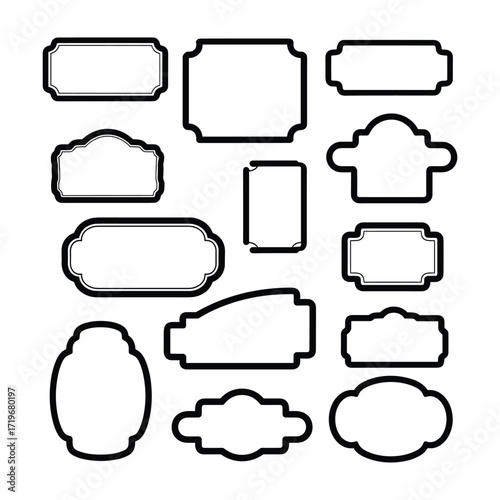 Fototapeta premium Collection of Decorative Blank Labels and Frames with Black Outlines empty
