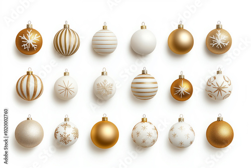 Fototapeta premium Collection of decorative Christmas ornaments in various styles and colors isolated on white background