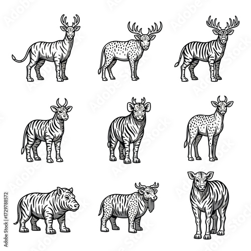Obraz premium Collection of deer and tiger hybrid vector illustration