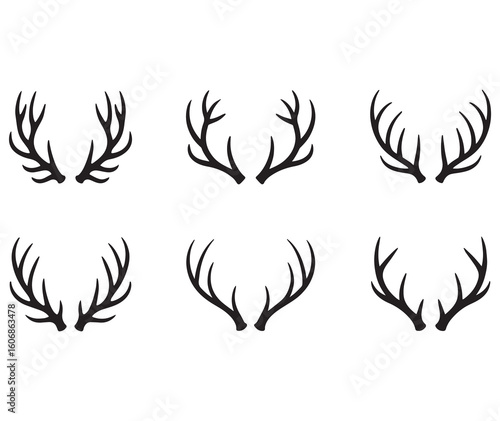 Fototapeta premium Collection of Deer Antler Silhouettes on White Background for Festive Design...