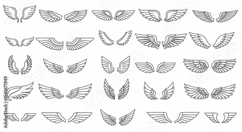 Fototapeta premium Collection of Detailed Outline Angel Wings in Various Styles