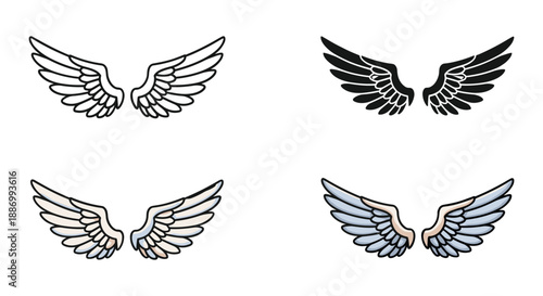 © fahad, Fototapeta premium Collection of different style angel wings on white background