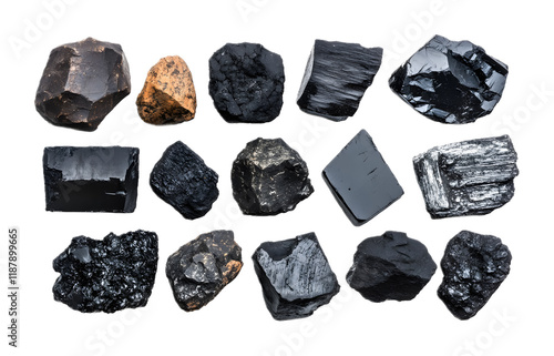 © akbar, Naklejka premium Collection of different types of coal on a transparent background. isolated background.