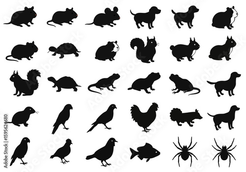 © Elzayady, Naklejka premium Collection of Diverse Animal Silhouettes Featuring Mammals Birds Reptiles and Insects for Graphic Design and Educational Purposes