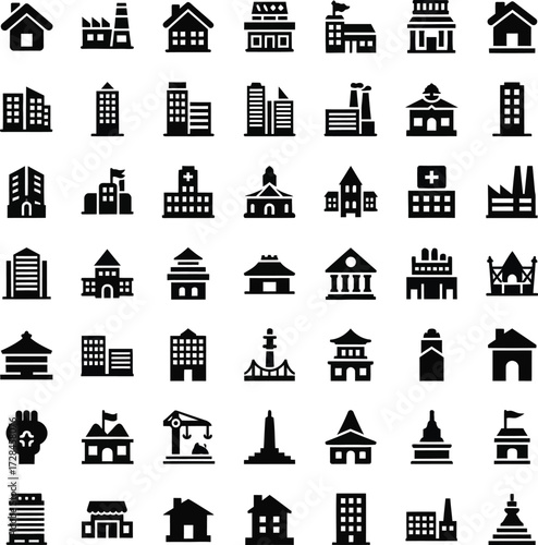 © MOHAMMADSAIFUL, Fototapeta premium Collection of diverse building icons for design and illustration